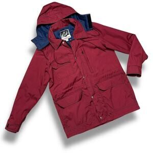 Vintage Woolrich pullover fleece dating to the late 1980s–early 1990s. Made in the USA. Features a bold red, green, and navy colorblock design with a quarter-snap front closure and stand collar. Pullover style. Soft, midweight fleece with classic outdoor styling and durable hardware. A strong example of early performance fleece from Woolrich’s peak heritage era.
