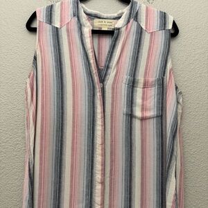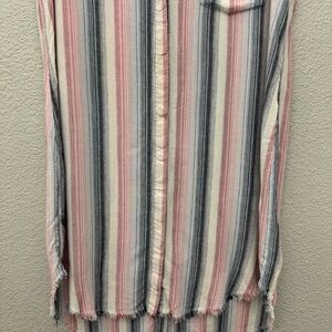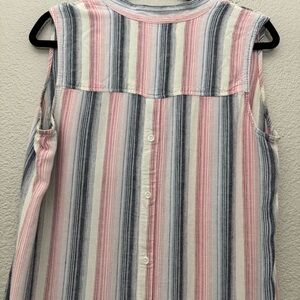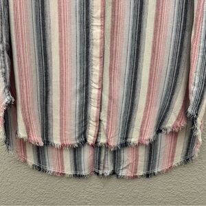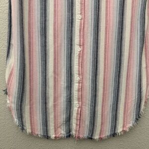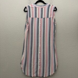 Cloth & Stone Linen Blend Striped Sleeveless Shirt Dress Frayed Hem Size Medium