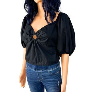 NWT Abercrombie & Fitch Black Keyhole Puff Sleeve Crop Top Size Large