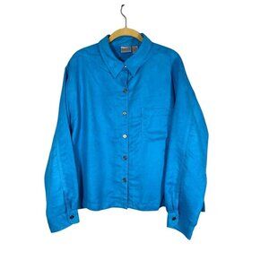 Chicos Suede Shirt Blue XL Coastal Preppy Classic Boho Western Retro Staple 80s