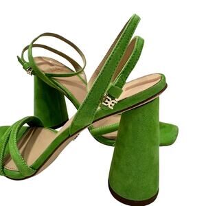 Sam Edelman Block Heel Kia Sandal Women's 8.5 Suede Green Apple Brat Wicked