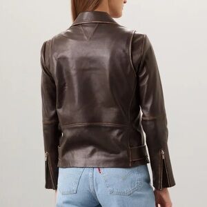 Soften up your moto look with this distressed brown leather biker jacket by VEDA. Wear this easy transitional staple to add a punk edgy to an outfit that needs some rebellion.
