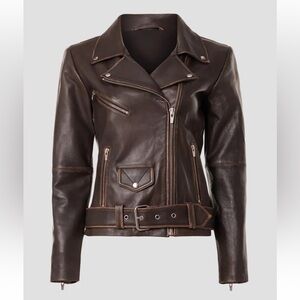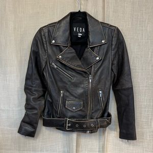 VEDA Classic Leather Moto Jacket in Size XS