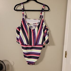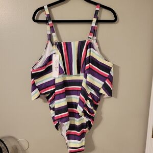 Rosegal Women's Plus Size Colorful Striped One Piece Swimsuit. Size 5X