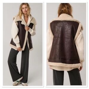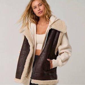Offline by Aerie Cream & Brown Teddy Vest Jacket nwt large