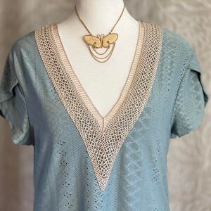 Sage Green Eyelet Lace Trim Boho Forest Fairy Festival Whimsygoth Top Size S