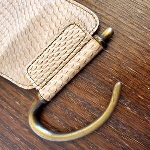 Vintage Italian Wide Leather Belt Beige Reptile Embossed D-Ring