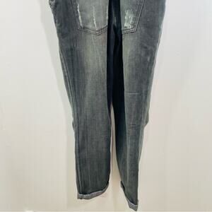 Free People Distressed Faded Black Slim Leg Overalls 26