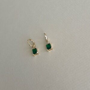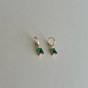 These elegant earrings feature a stunning green gemstone set in a gold frame. Perfect for adding a touch of sophistication to any outfit.