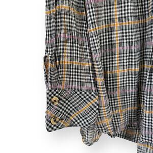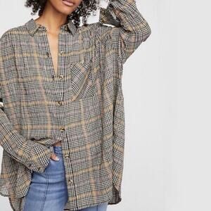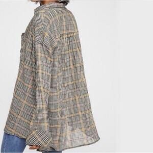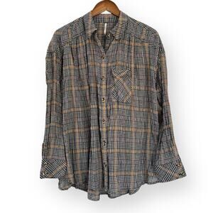 Free People Break My Stride Black/White Metallic SMALL Button Up Top Oversized
