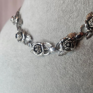 The silver-tone finish retains a rich, luminous patina, enhancing the depth and sculptural quality of the roses without excessive wear or loss of detail.