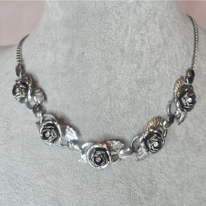 Keywords: vintage Coro necklace, unsigned Coro jewelry, cabbage rose necklace, silver...