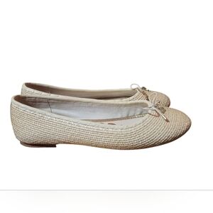 Sam Edelman Falcon Rafia Ballet Flats With Bow In a Cream Color Size 7.5