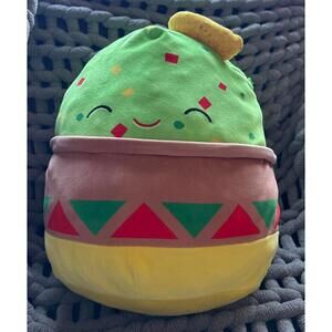 lovable, food-inspired Squishmallow character shaped like a bowl of guacamole with a smiling face and a cute tortilla chip sticking out. It’s part of the Food Squad series and stands about 14 inches tall — a popular size for collectors and casual fans alike.