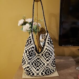 NEW IN PACKAGING!This black and white crochet shoulder bag with inner lining is amazing and has magnetic snap closure! Very room! Perfect for Spring, Summer, Winter or Fall, this bag combines style, comfort and functionality. She's one you don't want to miss. You'll want to carry her daily. I only have one so get her before she's gone!!!
