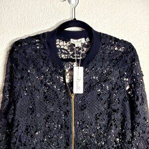 Simply Noelle Black Lace Zip-Up Cardigan S/M 8-10 Womens Lightweight Jacket NWT