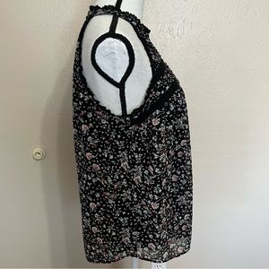 Maeve Anthropologie Black Floral Chiffon Sleeveless Blouse Womens Size Medium