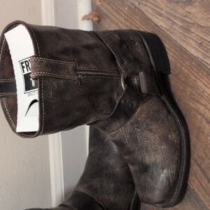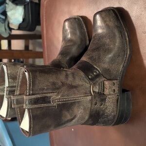 Frye Mens Harness Distressed Dark Brown Leather Boots