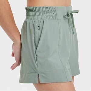 Size Medium Women’s All in Motion Green Woven Mid Risw Shorts 4”