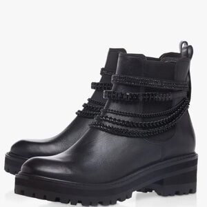 NEW Dune London Puzzel Leather Embellished Chain Ankle Boots Black