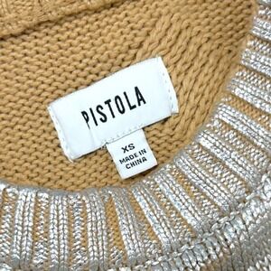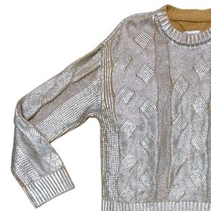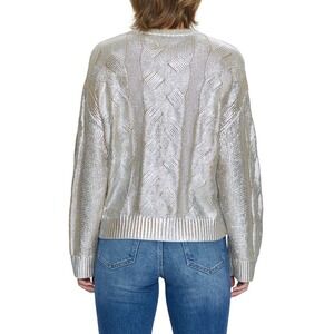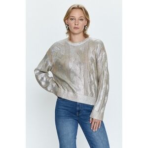 Pistola Everly Foil Accent Metallic Cable Knit Cotton Crewneck Sweater Size XS