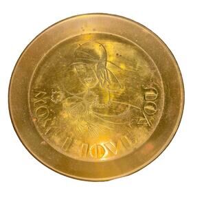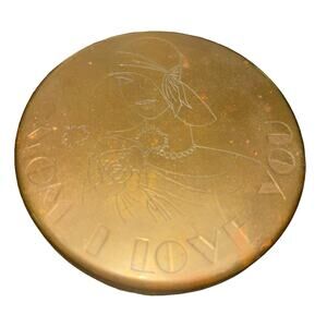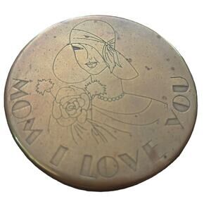 Brass Dresser Set “Mom I Love You” Red Velvet Lined Trinket Box & Dish Signed