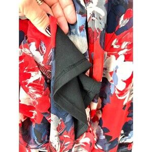 This beautiful Just Taylor dress features a red and navy floral pattern with eyelet stitching details. The sleeveless midi dress has a flattering fit and flare style with pleated and layered accents. The dress also includes a hook and eye closure and collarless design. Perfect for any occasion, this dress can be dressed up for a party or cocktail event, or dressed down for a casual or business setting. The 100% polyester material is comfortable and easy to care for with hand wash only instructions. This dress is a size 6 and has a regular fit.