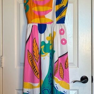 The Alter’d State Green Floral Maxi Skirt is a stylish and eye-catching piece perfect for the summer and spring seasons. Made from a blend of polyester and rayon, this skirt features a high front slit, adding a touch of allure to the long maxi length. The vibrant green color and floral pattern make it a standout choice for any woman's wardrobe, while the zip closure ensures a comfortable fit in size medium. Made in China, this skirt combines quality with on-trend design from the brand Alter’d State. Flowy. Waist 28, L 40.