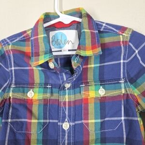 Boden Kids Blue Plaid Flannel Button Up Long Sleeve 2-3Y 100% Cotton Pockets