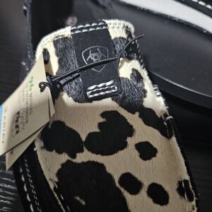 Stylish and comfortable, these Ariat loafers feature a striking black and white cow print design. Perfect for any occasion, they offer both durability and flair.