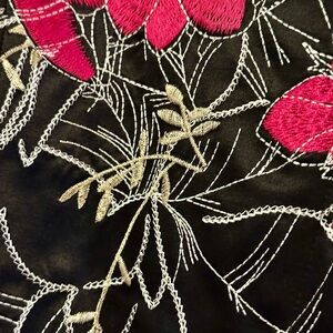 Chico's Black and Pink Satin Floral Blazer