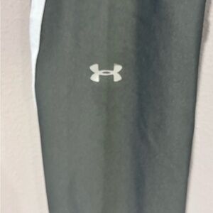 Charcoal leggings featuring sleek white trim. Ideal for active wear.