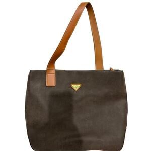 Dooney & Bourke Camden Saffiano Black Nylon Satchel w Brown Leather Trim