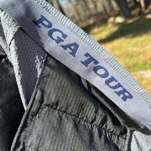 PGA Tour Men's Golf Shorts - Gray Geometric Pattern with Palm Trees (Size 38)