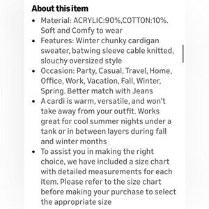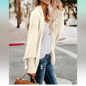 Women’s Batwing Oversized Cable Knit Cardigan Sweater, size XL, Ivory, EUC