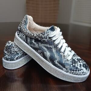 Bling Womans Jeweled Fashion Sneakers Stud Collar Snake Skin Texture Bella Luna