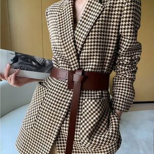 Chic denim satchel with vibrant blue leather trim. Features signature DB pattern. Ideal for daily wear.