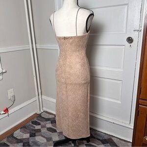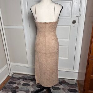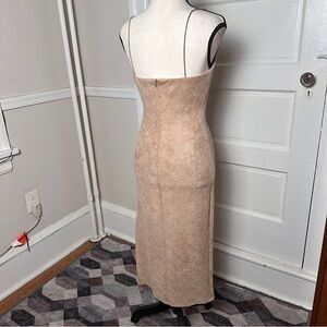 4SI3NNA Midi Dress Sz S Bodycon Neutral Muted Snakeskin Print Slit Stretch