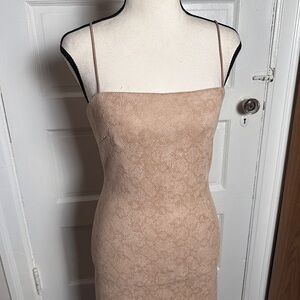 4SI3NNA Bodycon Dress Sz S Neutral Muted Snakeskin Print Slit Stretch