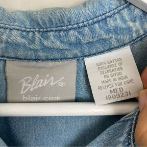Vintage Southwest Embroidered Feather Chambray Denim Button Front Shirt Medium