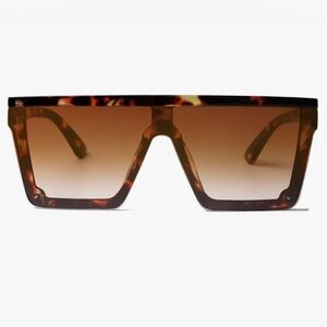 Square Oversized Sunglasses for Women or Men with Big Flat Top Fashion Shield Large UV Protection Rimless Shades. Brown Tortoise color.