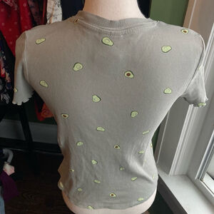 Women's H&M T-shirt Size S Gray Avocado Print