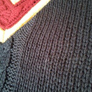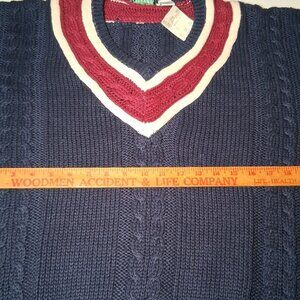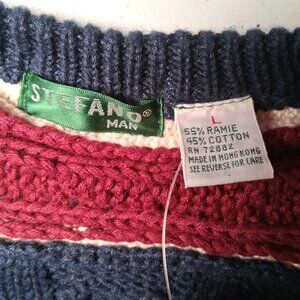 Vintage 90s Stefano Man Sweater L Blue Maroon Cable Knit V Neck Academia Preppy