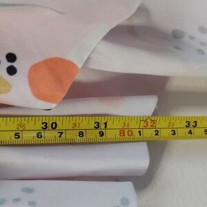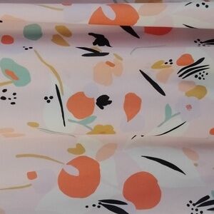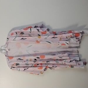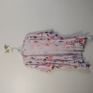 Lightweight kimono cardigan with a colorful abstract pattern. Features ruffled hem and open front design. Perfect for layering.