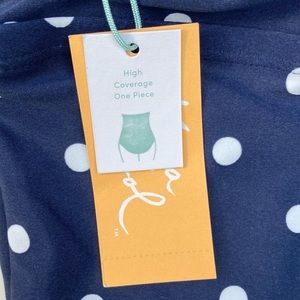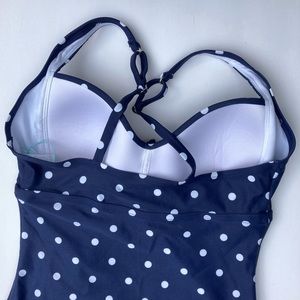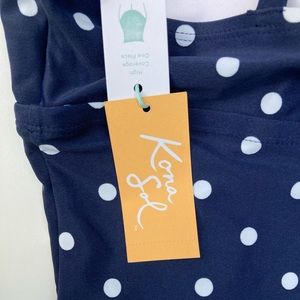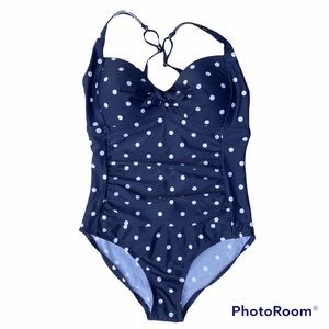 Kona Sol Swimsuit One Piece Size Medium 8-10 Polka Dot Navy And White Retro NWT