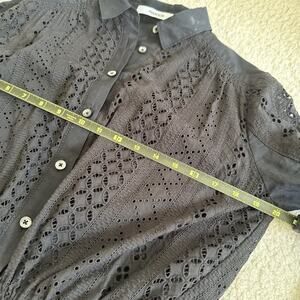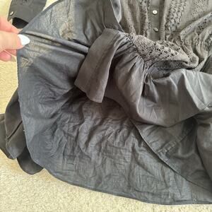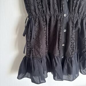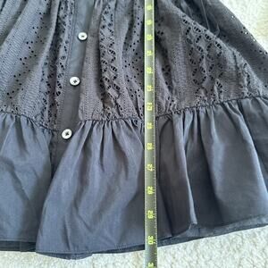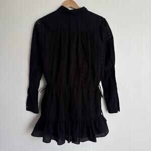 THAKOON Black Eyelet Lace Ruffle Hem Button Down Silk Cotton Mini Shirt Dress 0