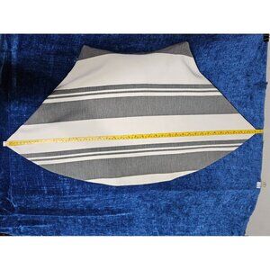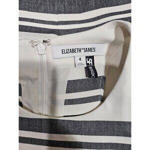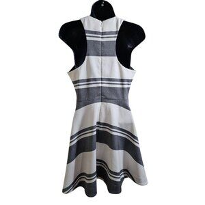 Elizabeth & James Vineyard gray and cream striped dress size 4. Short mini dress fit and flare with racer back and zips with a hook at the top back, fully lined. No snags or stains, in excellent condition, worn once. Flat Lay measurements: chest 15.5", waist 13", skirt length 18", skirt width 35".