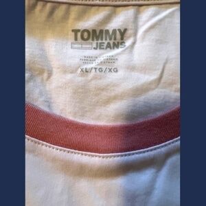 TOMMY JEANS NWT Cropped Cotton Color Block Logo T-Shirt-Pink & White/XL