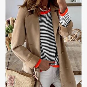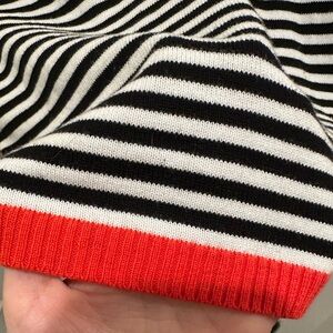 Elevate your style with this chic striped top. Featuring a classic black and white pattern with bold red accents, it's perfect for any occasion. Pair it with your favorite jeans or skirt for a trendy look.