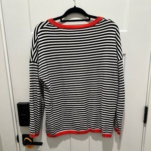 Striped Black and White Top with Red Accents